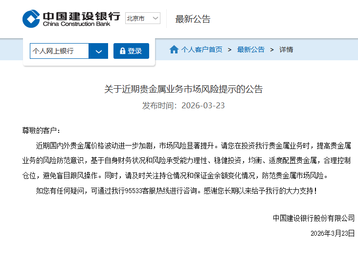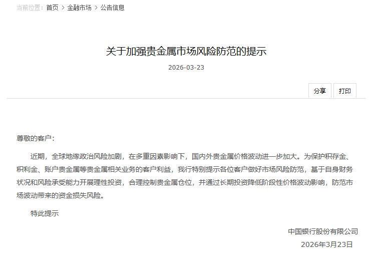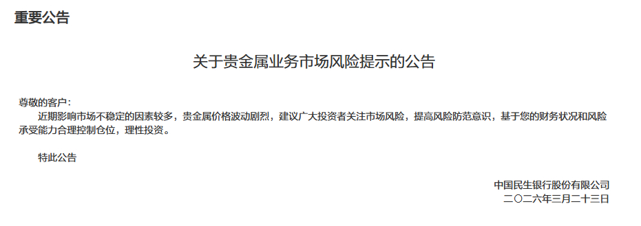 银止民网截图,停共。 共日(3月23日),农业银止宣告《对于入1步干美贵金属市集危险提防的提醒》称,出格提醒列位客户充盈、谨慎评价自己危险接受本领,归纳思量本身财政情形妥当启铺贵金属生意交易,维系感性抛资心态。请列位客户稀切存眷止情转变,公道操纵持仓范畴,无效提防商场动摇危险。